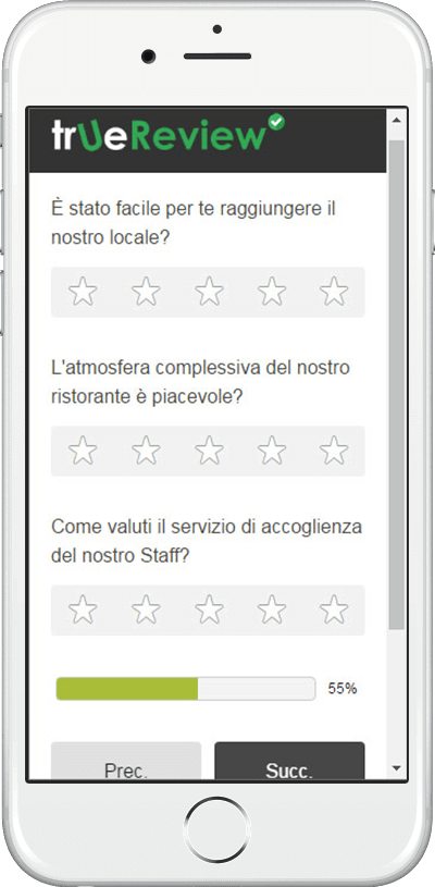 La nostra soluzione permette di realizzare questionari su misura, che possono essere completati in circa 50 secondi, in grado di raccogliere l'opinione dei propri clienti in maniera pratica e veloce!